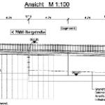 Die Wanddicke ist aufgrund der geneigten Vorderkante variabel (0,66 m - 0,95 m). Auf der Wand ist eine Kappe mit 0,4 m sichtbarer Breite vorgesehen, auf welcher als Absturzsicherung ein Holzzaun angeordnet ist.