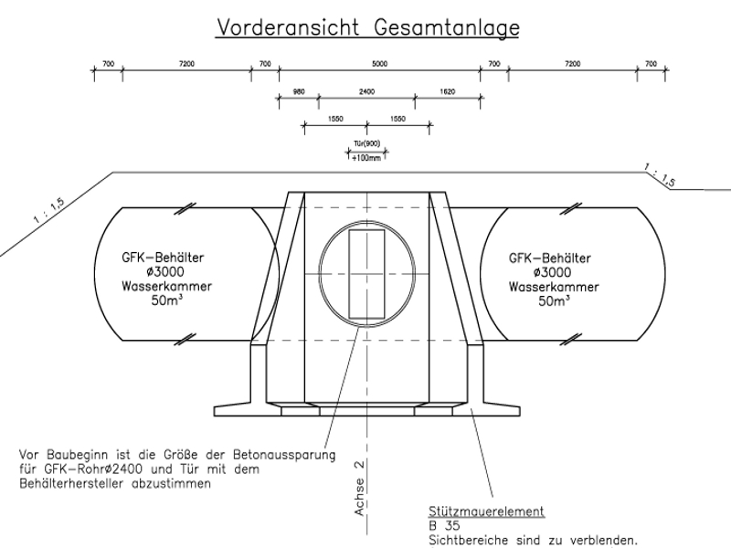 Der Hochbehälter Hammerberg I ist Gegenstand der Gesamtbaumaßnahme "Sanierung einer bestehenden Trinkwasserversorgungsanlage". Die Gesamtbaumaßnahme ist unterteilt in: